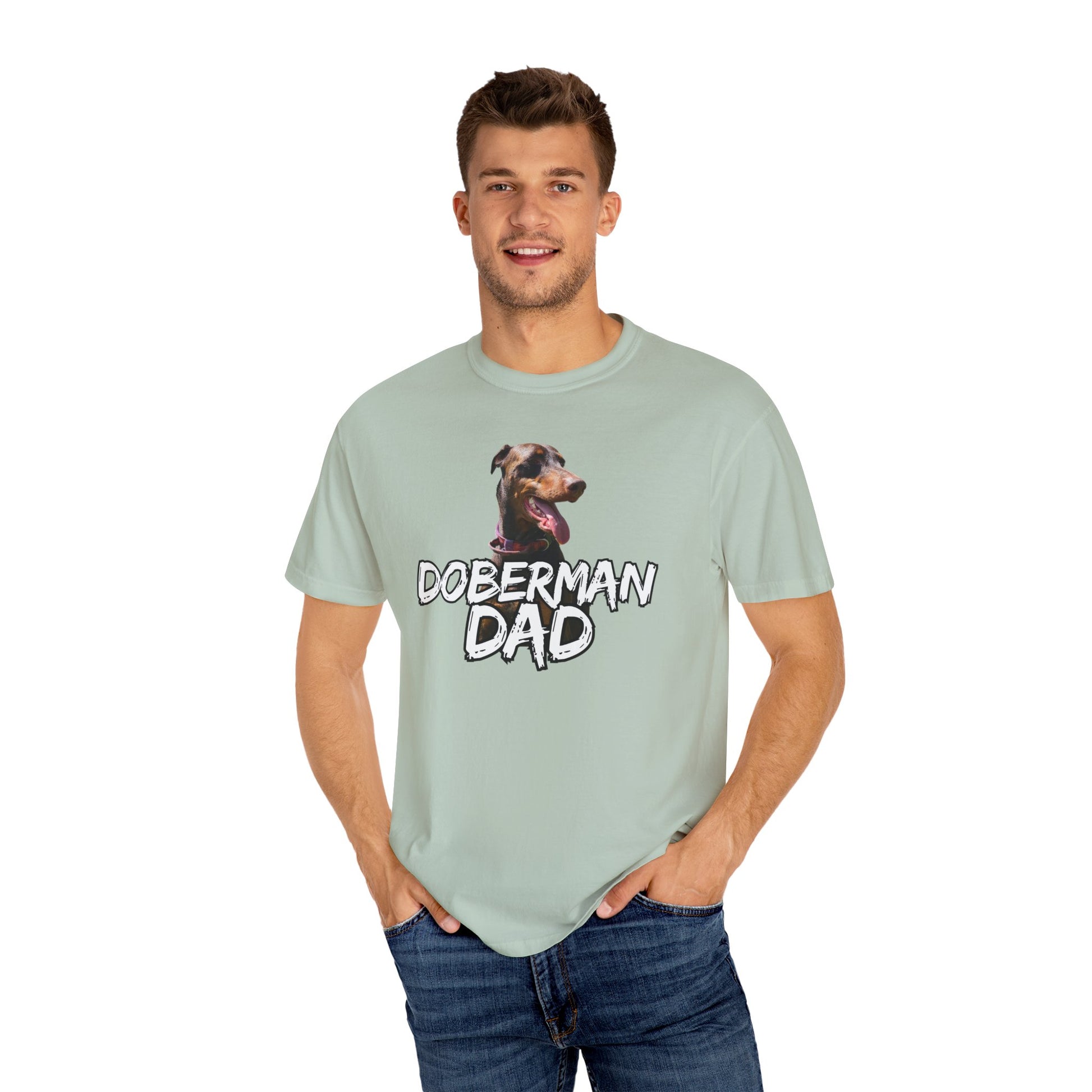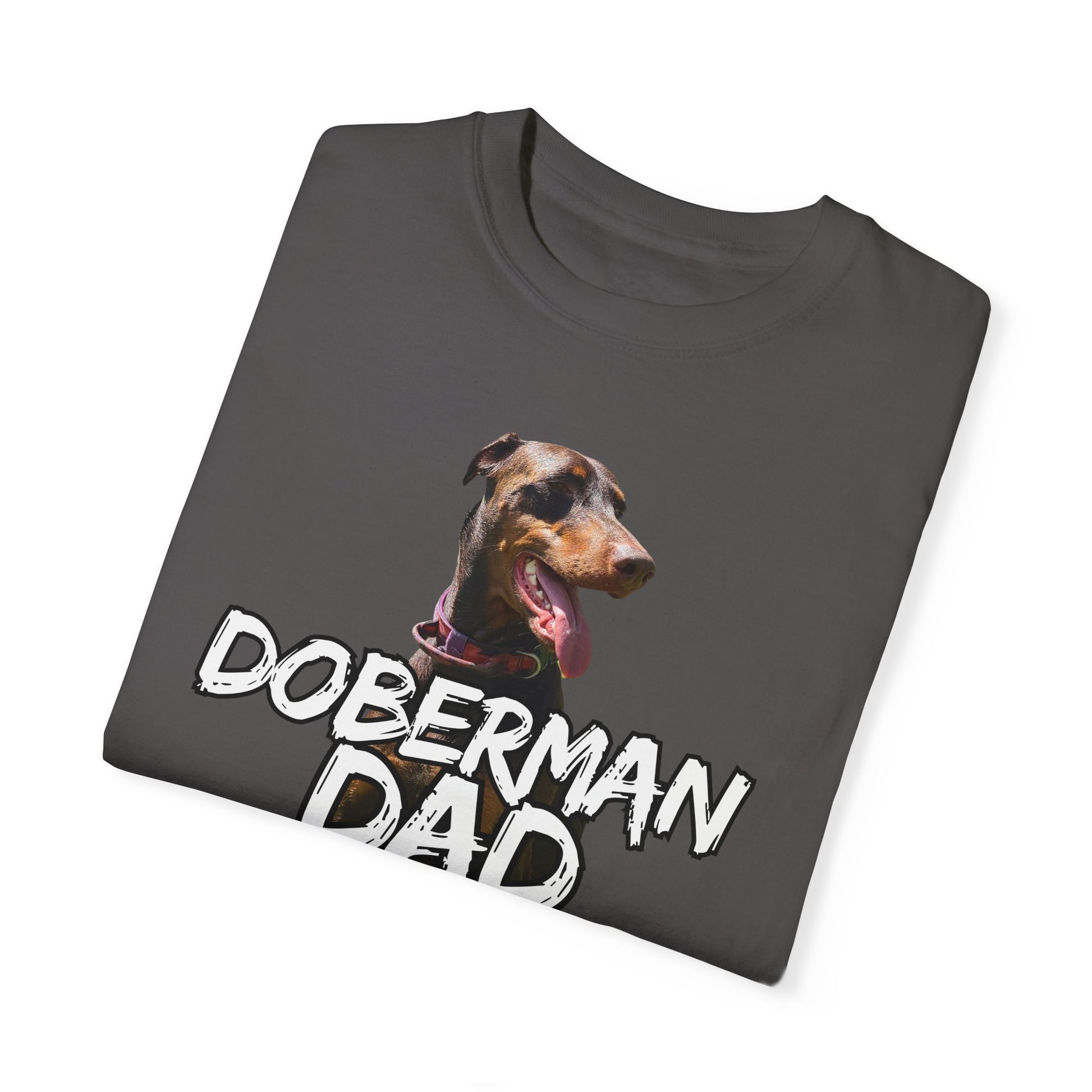 Celebrate your love for your furry friend with this stylish Unisex Garment-Dyed T-shirt, perfect for all Doberman parents. Made from 100% ring-spun US cotton, this tee offers a soft and cozy feel that you'll love wearing every day. Its relaxed fit makes it an ideal choice whether you're lounging at home, running errands, or meeting up with friends. The vibrant design showcases your passion and adds a playful touch to any outfit. Suitable for any occasion, including dog-related events, family gatherings, or casual hangouts. This T-shirt also serves as a great gift idea for Father’s Day or birthdays, making it a must-have for Doberman enthusiasts!