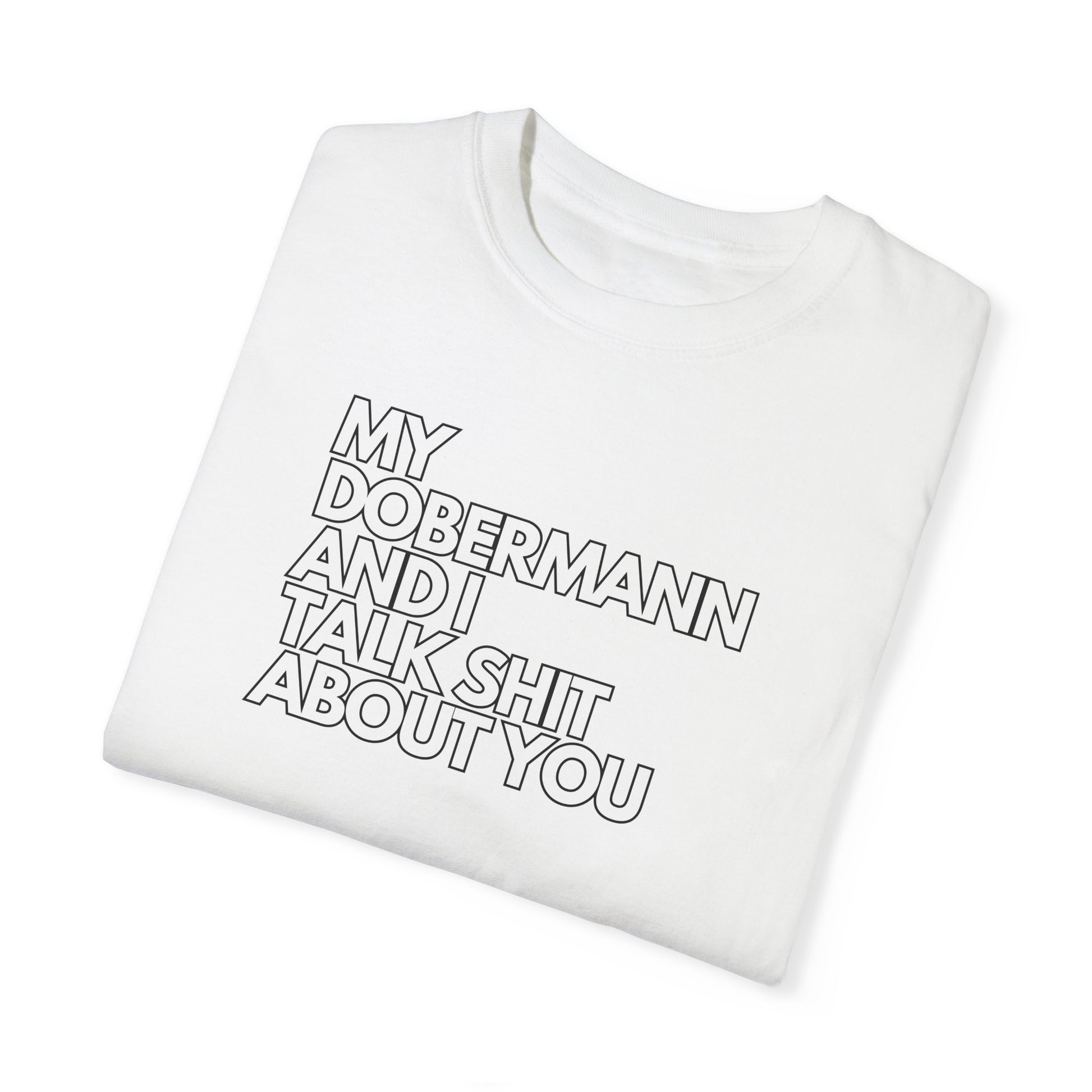 Celebrate your love for your furry friend with this stylish Unisex Garment-Dyed T-shirt, perfect for all Doberman parents. Made from 100% ring-spun US cotton, this tee offers a soft and cozy feel that you'll love wearing every day. Its relaxed fit makes it an ideal choice whether you're lounging at home, running errands, or meeting up with friends. The vibrant design showcases your passion and adds a playful touch to any outfit. Suitable for any occasion, including dog-related events, family gatherings, or casual hangouts. This T-shirt also serves as a great gift idea for Father’s Day or birthdays, making it a must-have for Doberman enthusiasts!
